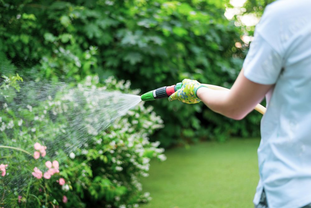 Keep your plants hydrated and healthy by using a spray gun to water evenly and gently. Image: Shutterstock.