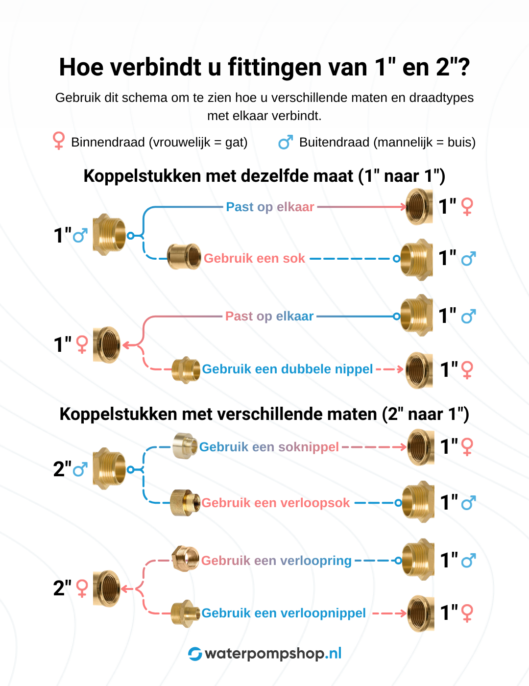 Hoe verbindt u fittingen van 1" en 2"? Image: Waterpompshop.nl
